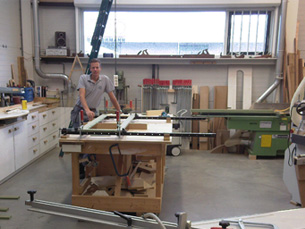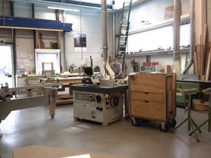 In onze zeer ruime werkplaats hebben wij de modernste apparatuur staan. Er staan diverse zaagtafels , zoals een afkortzaag, formaatzaag, lintzaagmachine, freesmachines, draaibanken, verdiktebank en een vlaktebank.